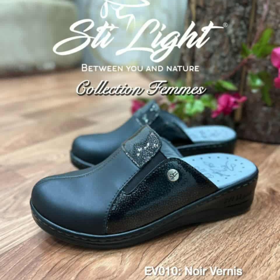 Sabot Orthopédique STI Femme Noir Vernis EV010 : Alliez Élégance et Confort au Quotidien